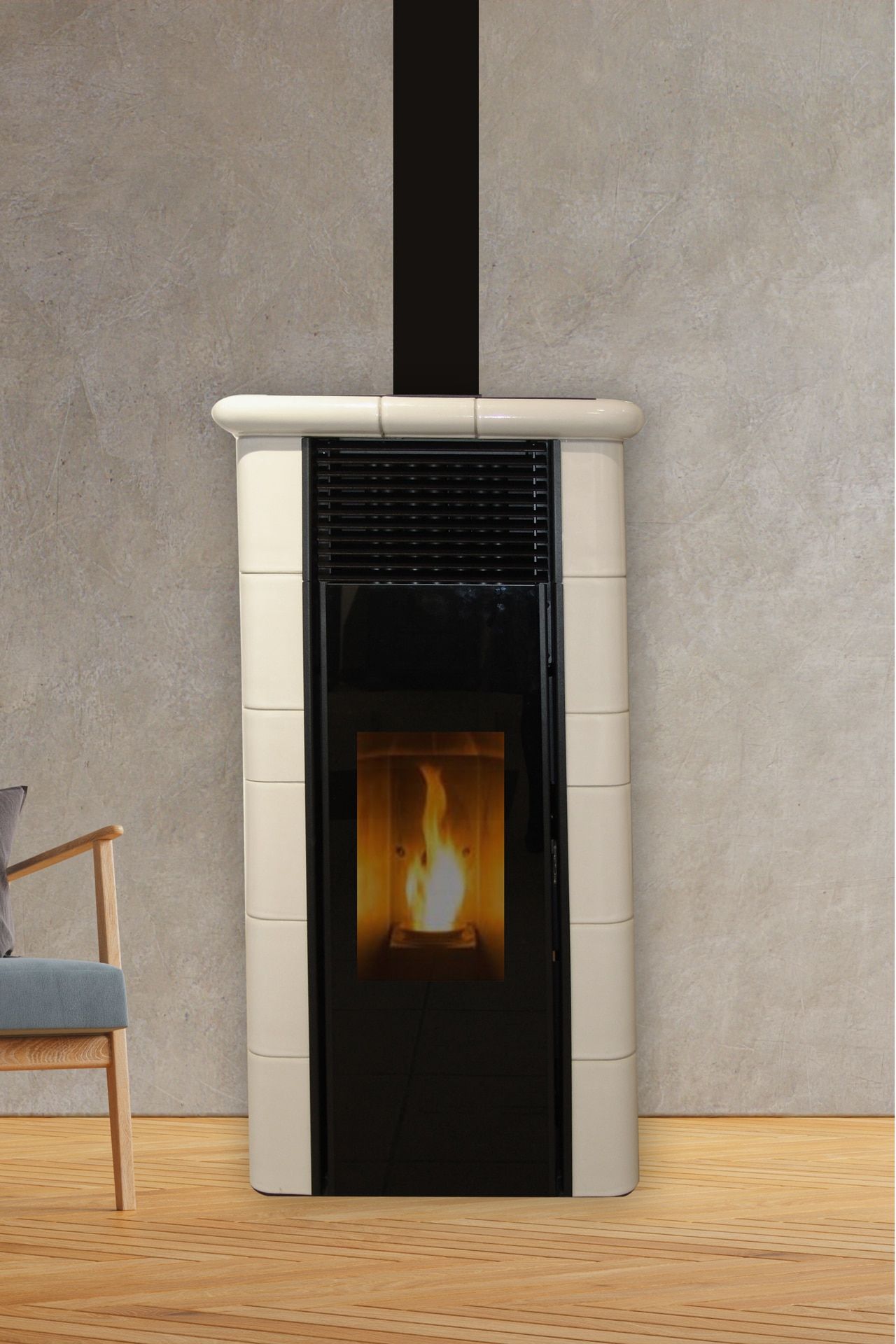 De Laminox Lydia Perle mantel is zeer luxueuze Ecodesign pelletkachel zonder geluid en stroom. Deze pelletkachel brandt als een houtkachel. De mantelbekleding is er meerdere kleuren. En geeft een luxe uitstraling. De kachel blijft slank en past in het moderne interieur. Goed voor het verwarmen uw woonkamer tot 200 kuub/75 vierkante meter. De perfecte vervanger van je bewerkelijke houtkachel. Je vult hem ’s ochtends en steekt hem aan. de hele dag geen omkijken naar.